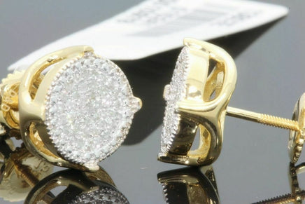 .30 CARAT STERLING SILVER YELLOW GOLD PLATED MENS WOMENS 9mm 100% REAL DIAMONDS EARRINGS STUDS