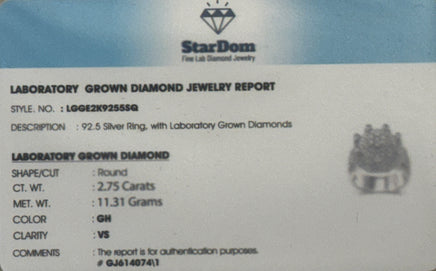 2.75 CARAT CERTIFIED LAB GROWN DIAMONDS STERLING SILVER RING