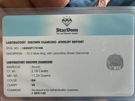 2.18 CARAT CERTIFIED LAB GROWN DIAMONDS STERLING SILVER GOLD PLATED RING