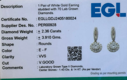 14K WHITE GOLD 2.36 CARAT CERTIFIED LAB GROWN DIAMONDS STUDS EARRINGS HOOPS