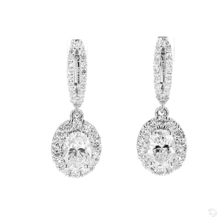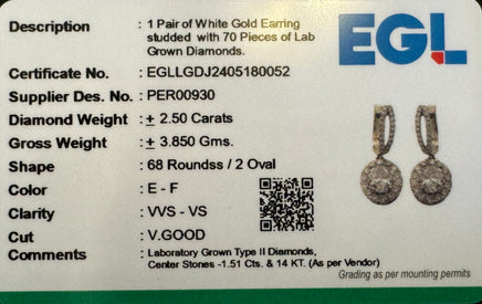 14K WHITE GOLD 2.50 CARAT CERTIFIED LAB GROWN DIAMONDS OVAL STUDS EARRINGS HOOPS