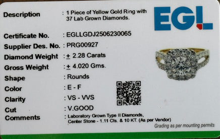 10K YELLOW GOLD 2.28 CARAT CERTIFIED LAB GROWN DIAMONDS RING
