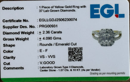 10K YELLOW GOLD 2.44 CARAT CERTIFIED LAB GROWN DIAMONDS EMERALD CUT RING