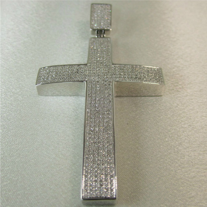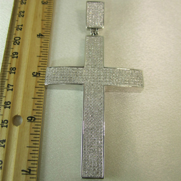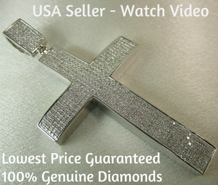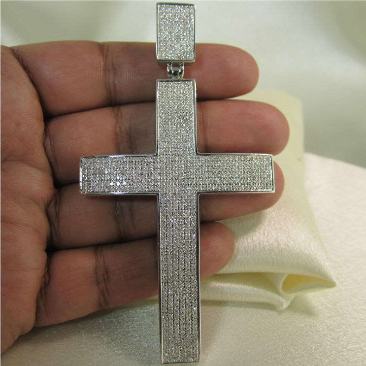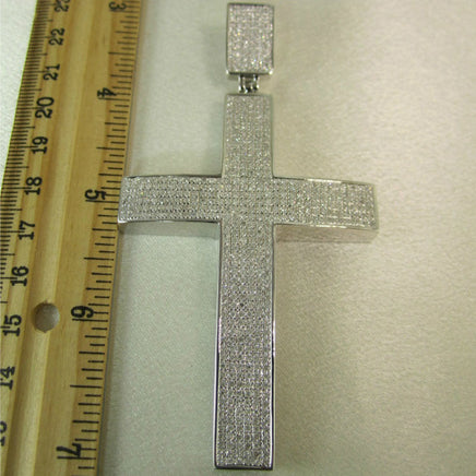 3 CARAT LARGE 4 INCHES REAL DIAMONDS STERLING SILVER RHODIUM PLATING CROSS CHARM PENDANT