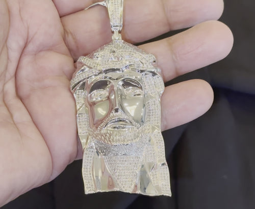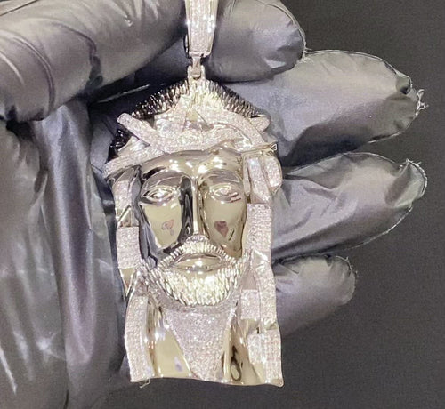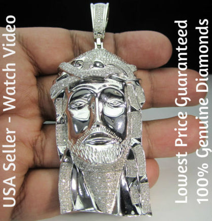 2.25 CARAT MENS STERLING SILVER 3.50" DIAMOND JESUS FACE HEAD CROSS CHARM PENDANT