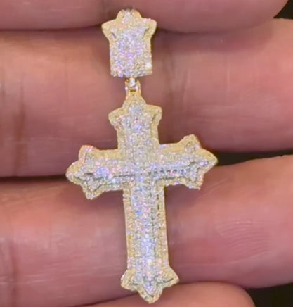 10K YELLOW GOLD .50 CARAT 1.50 INCHES NATURAL DIAMOND CROSS PENDANT CHARM