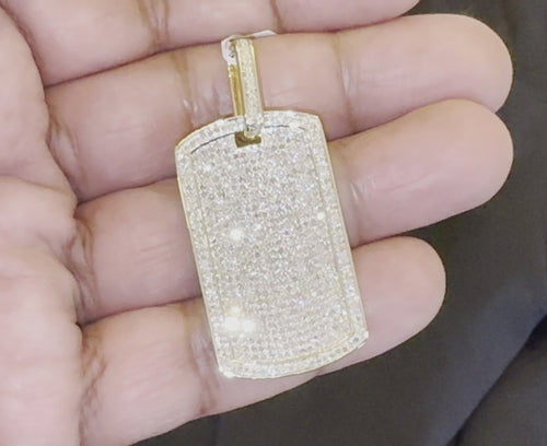 3 CARAT MENS STERLING SILVER WITH YELLOW GOLD PLATING 2" REAL DIAMOND DOG TAG PENDANT CHARM PIECE