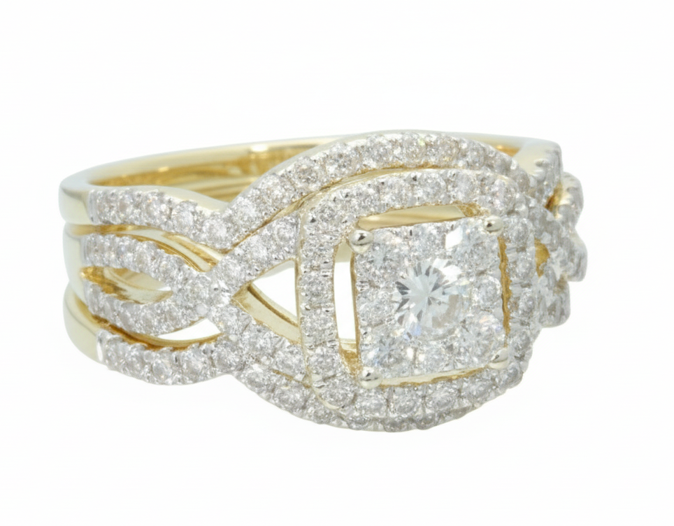 10K YELLOW GOLD 1.50 CARAT WOMENS REAL DIAMOND ENGAGEMENT RING WEDDING BANDS SET