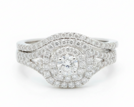 10K WHITE GOLD 1 CARAT WOMENS REAL DIAMOND ENGAGEMENT RING WEDDING BAND SET