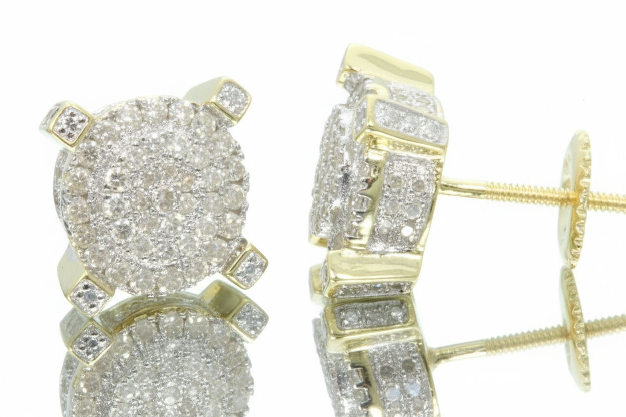 .65 CARAT STERLING SILVER YELLOW GOLD PLATING MENS WOMENS 9 mm 100% REAL DIAMONDS EARRINGS STUDS