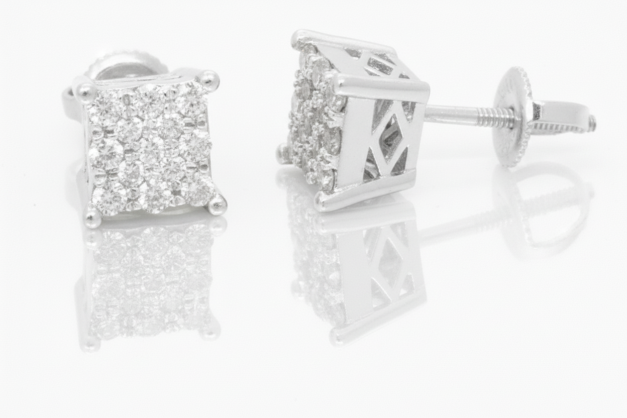 10K WHITE GOLD .40 CARAT MENS/WOMENS 5mm 100% GENUINE DIAMONDS EARRING STUDS
