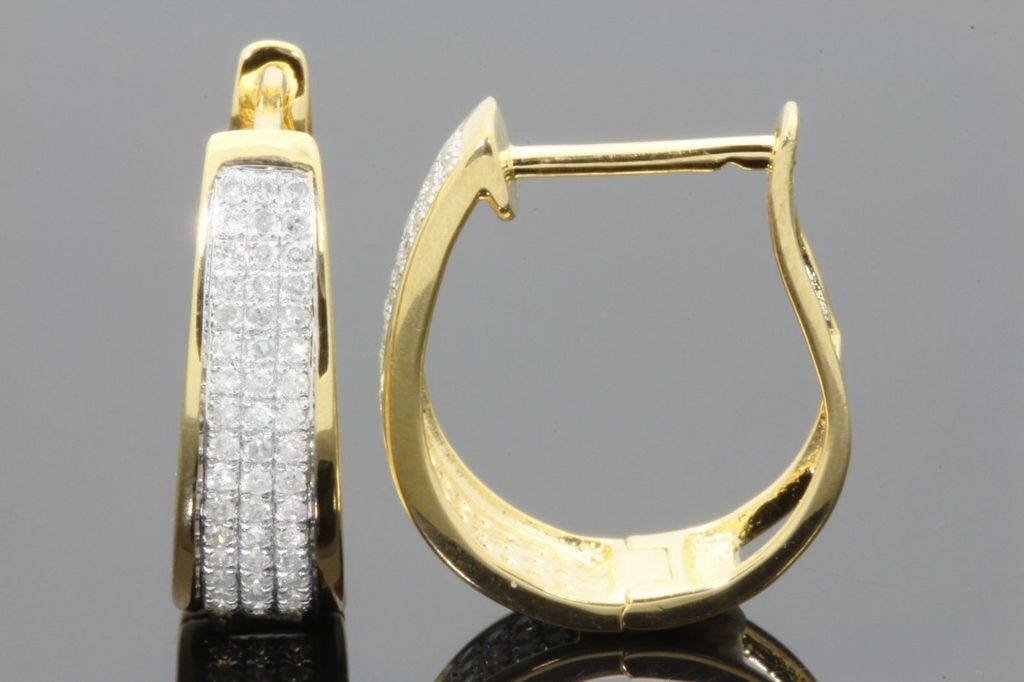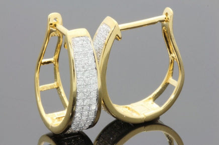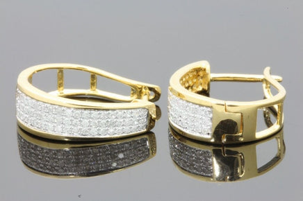 .50 CARAT REAL DIAMONDS STERLING SILVER YELLOW GOLD PLATING HOOPS EARRINGS HUGGIE STUDS