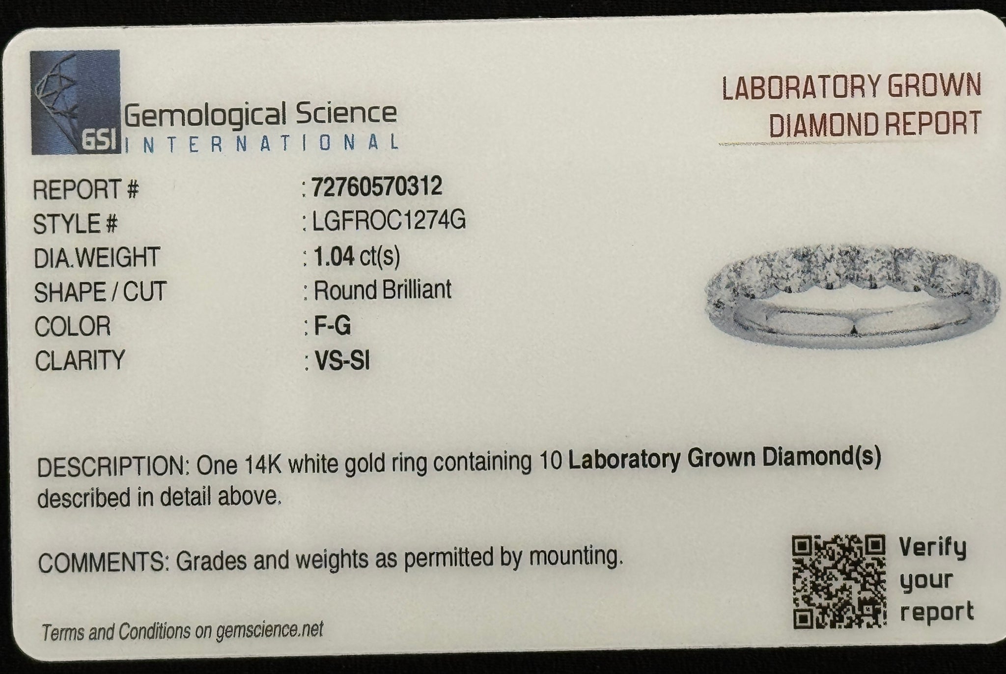 14K WHITE GOLD 1.04 CARAT CERTIFIED LAB GROWN DIAMONDS RING BAND