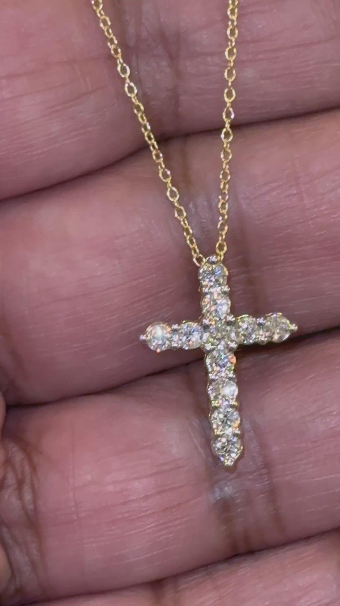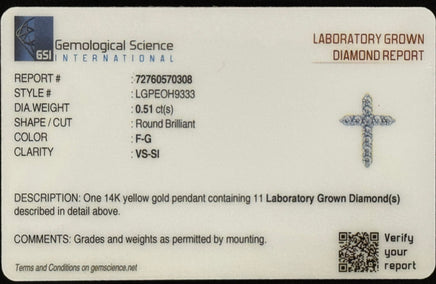 14K YELLOW GOLD .51 CARAT CERTIFIED LAB GROWN DIAMOND PENDANT CROSS WITH 18 INCH GOLD CHAIN