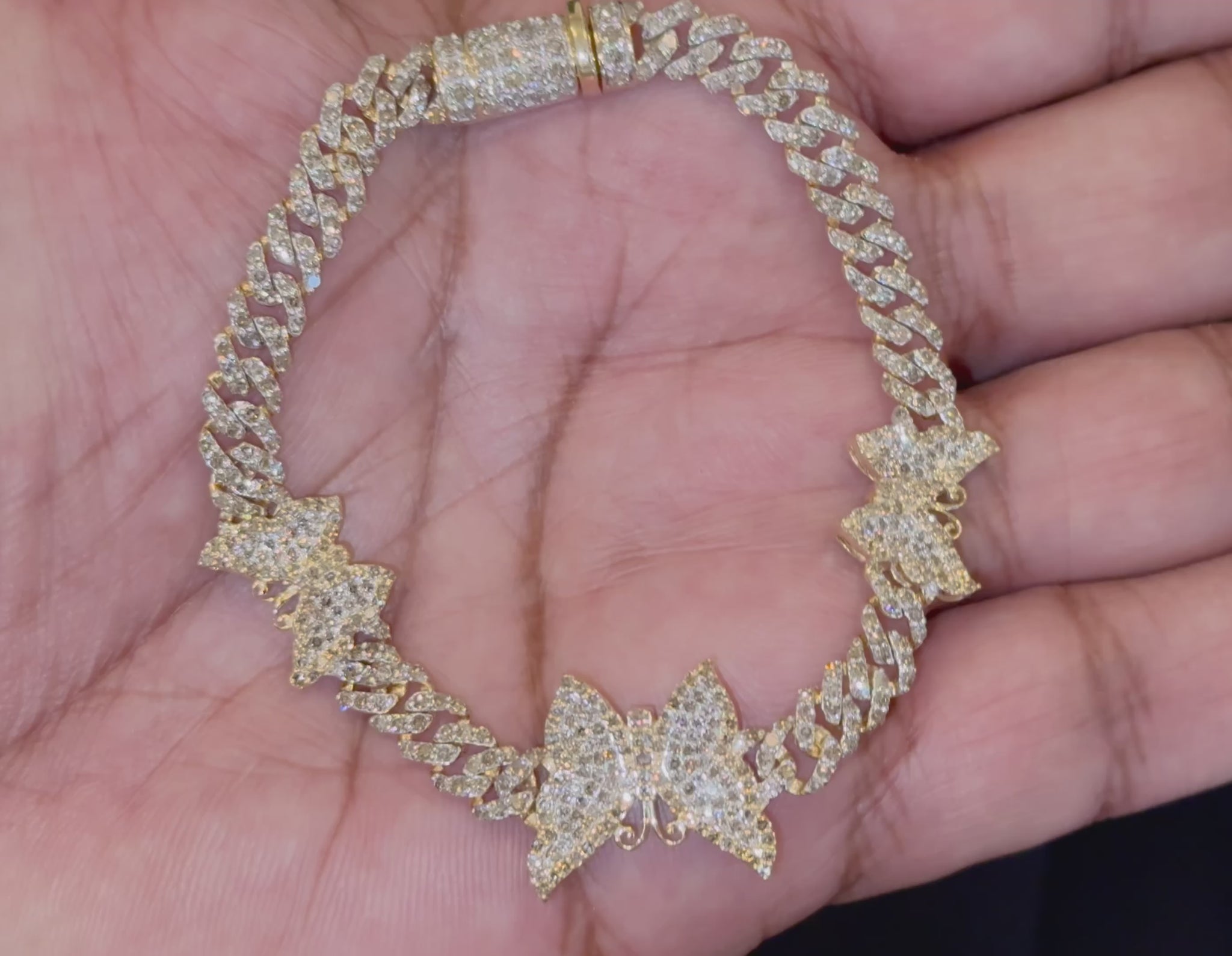 10K YELLOW GOLD 4 CARAT REAL DIAMOND 7 INCHES 15 MM WOMEN BUTTERFLY BRACELET