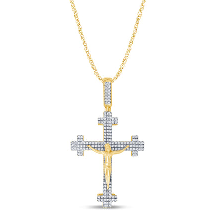 10K YELLOW GOLD .50 CARAT 1.75 INCHES REAL DIAMOND MEN CROSS PENDANT JESUS CHARM CROSS