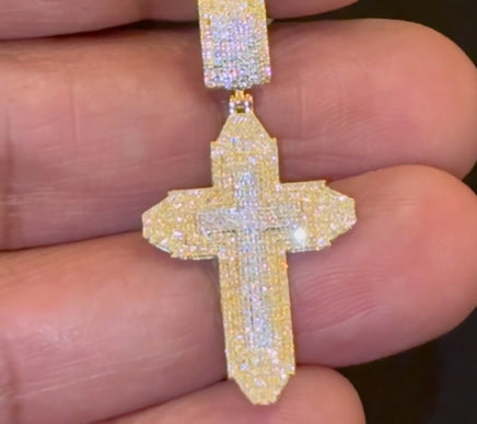 10K YELLOW GOLD .50 CARAT 1.50 INCHES NATURAL DIAMOND CROSS PENDANT CHARM