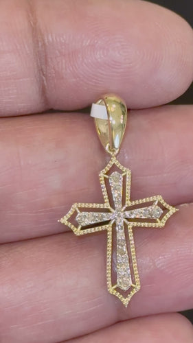 10K YELLOW GOLD .25 CARAT NATURAL DIAMOND 1.25 INCHES CROSS PENDANT